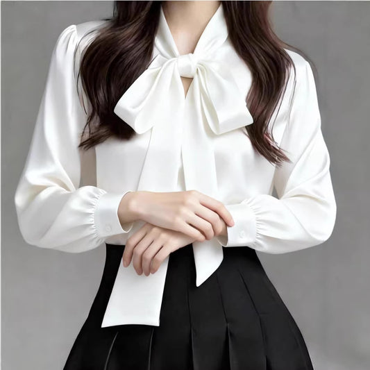 Sophisticated Early Spring Light-Luxury Satin Shirt With Ribbon Ties